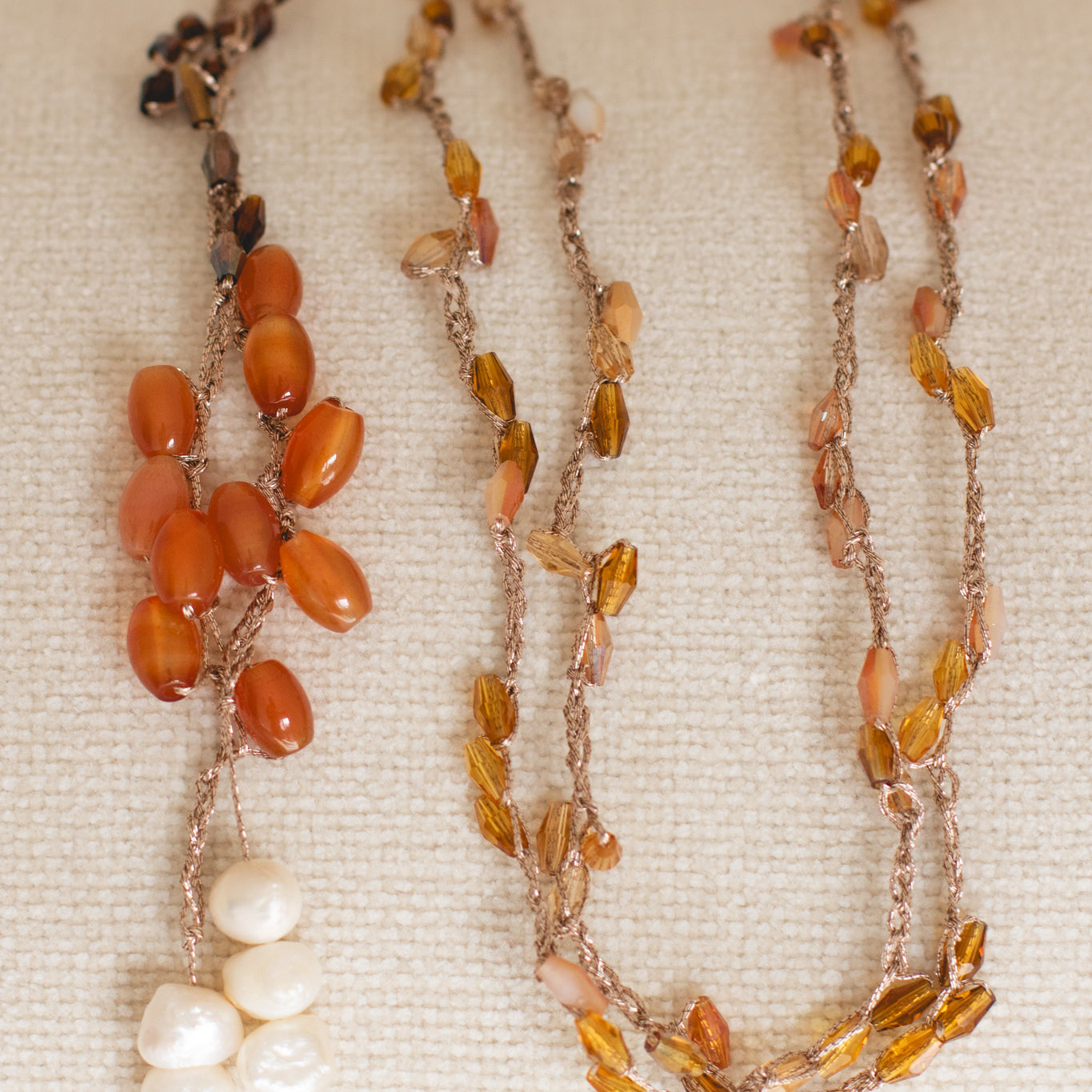 Piezas únicas diseñadas en España que capturan lo natural y lo inesperado. Cada collar cuenta una historia y cada abalorio está elegido con intención. Explora piezas que combinan cristal soplado, color y formas orgánicas.