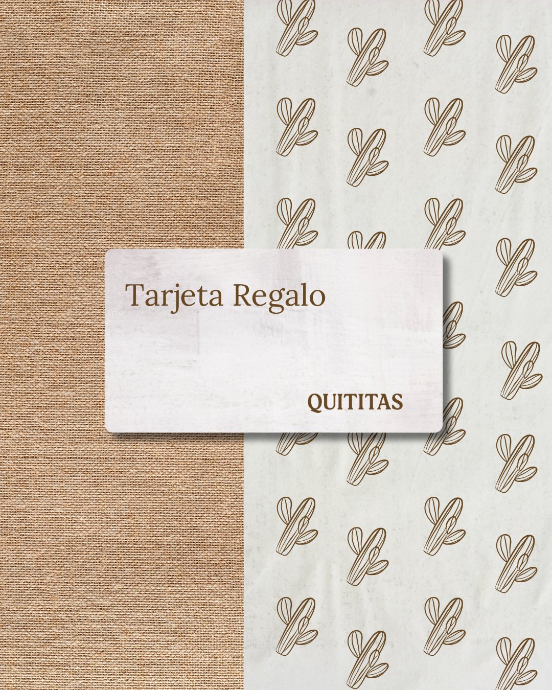 Con la Tarjeta Regalo de Quititas acertarás seguro. Es la opción ideal para sorprender a alguien especial sin preocuparte por elegir por ella. Podrá escoger lo que más le guste entre nuestras joyas, complementos y productos pensados para disfrutar con calma.
